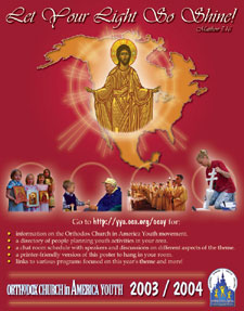 I am pleased to inform you that, at its meeting last April, the Holy Synod of Bishops chose “Let Your Light So Shine” (Matt 5:16) as the 2003/2004 ecclesiastical year’s theme for the Orthodox Church in America Youth Movement.